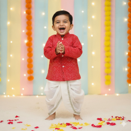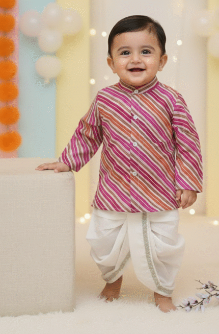 Boy’s Infant Dark Pink Cotton Kurta Set