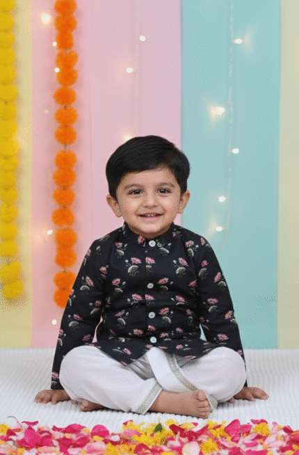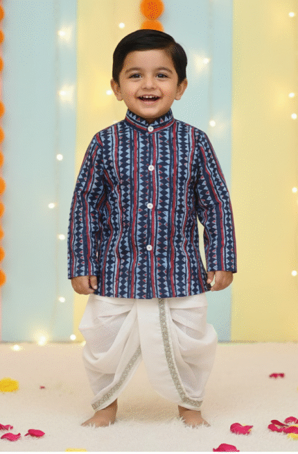 Boy’s Infant Dark Blue Cotton Kurta Set