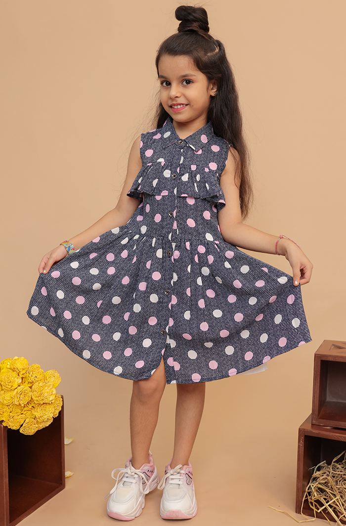 The Black-Pink Off-Shoulder Dress is a fashionable and trendy outfit. The Frill dress is great for occasions as well as casual get-togethers due to its off-the-shoulder style and stunning pink and white polka-dot print make it cute and stylish. poly-georgette fabric make it comfortable, lightweight, soft, and moveable .