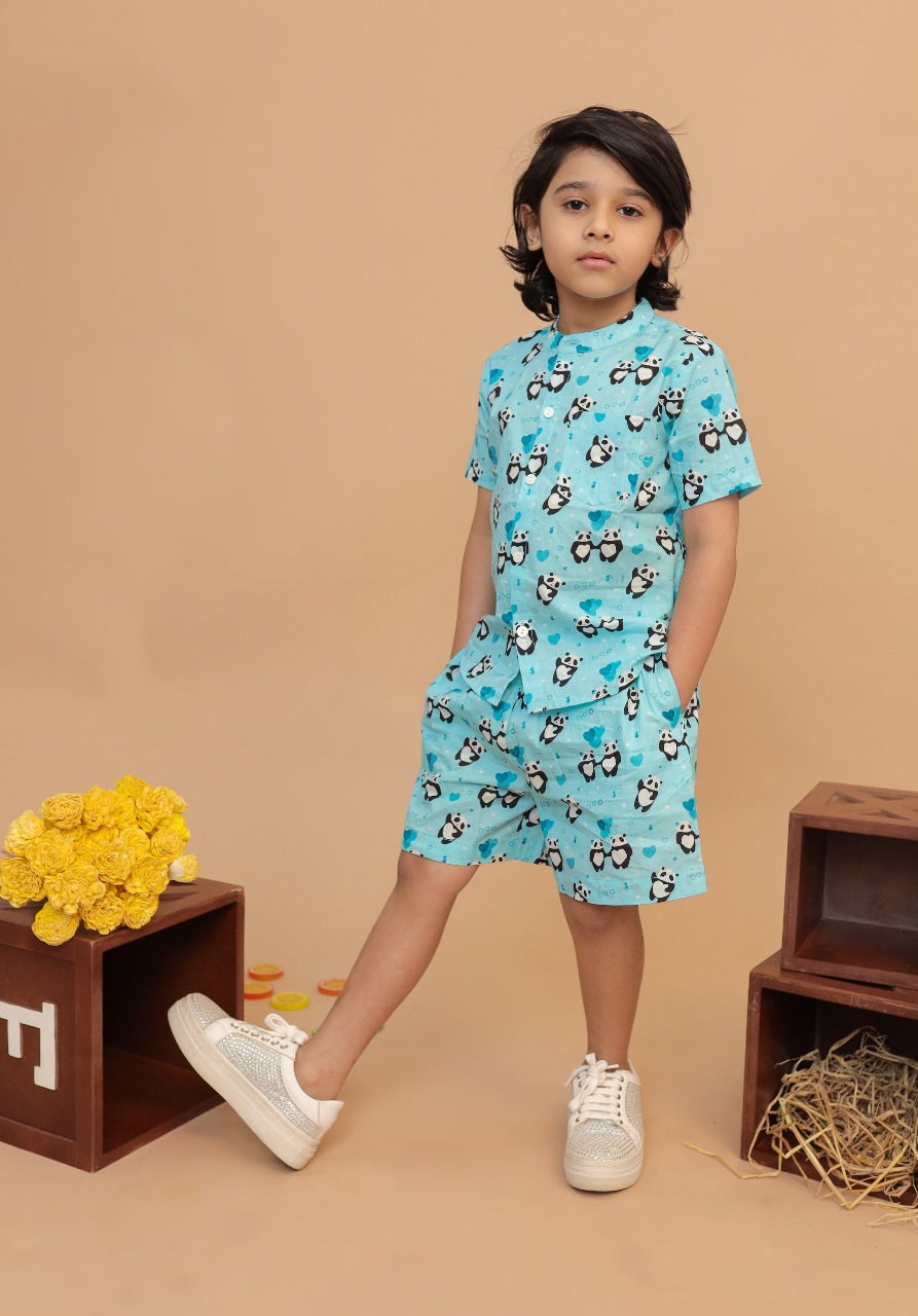 Boy Blue Half Shirt and Shorts Co-ord Set at Cotton Cuddle Boy Blue Half Shirt and Shorts Co-ord Set - Cotton Cuddle