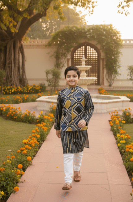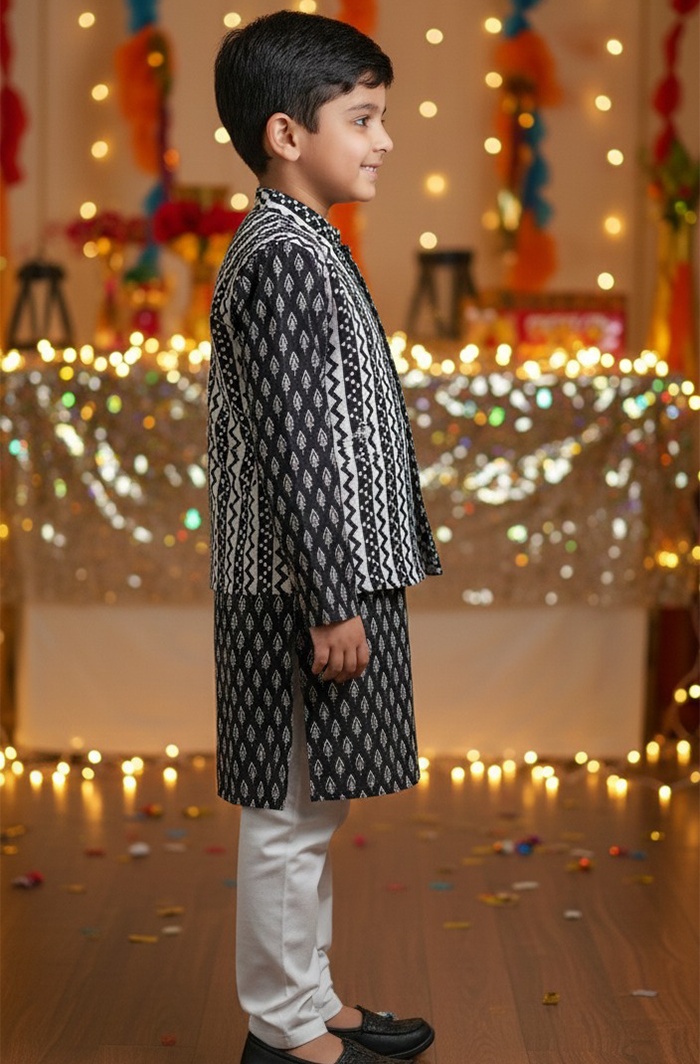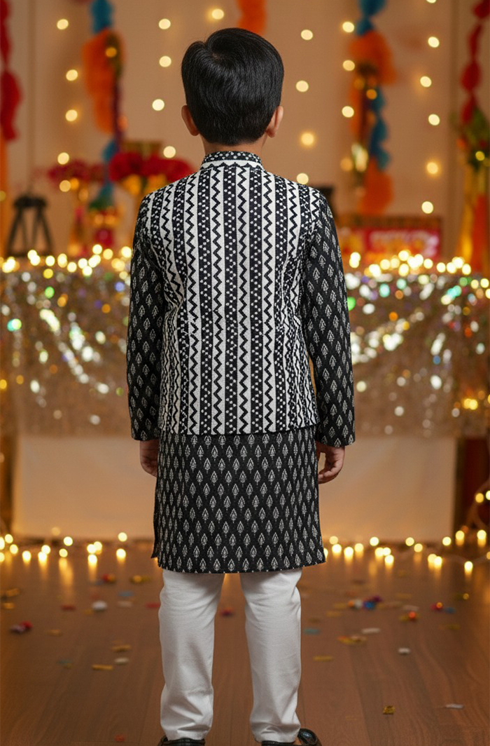 ✨ A stylish black ethnic ensemble that blends traditional elegance with everyday comfort—perfect for making your child stand out on special occasions.