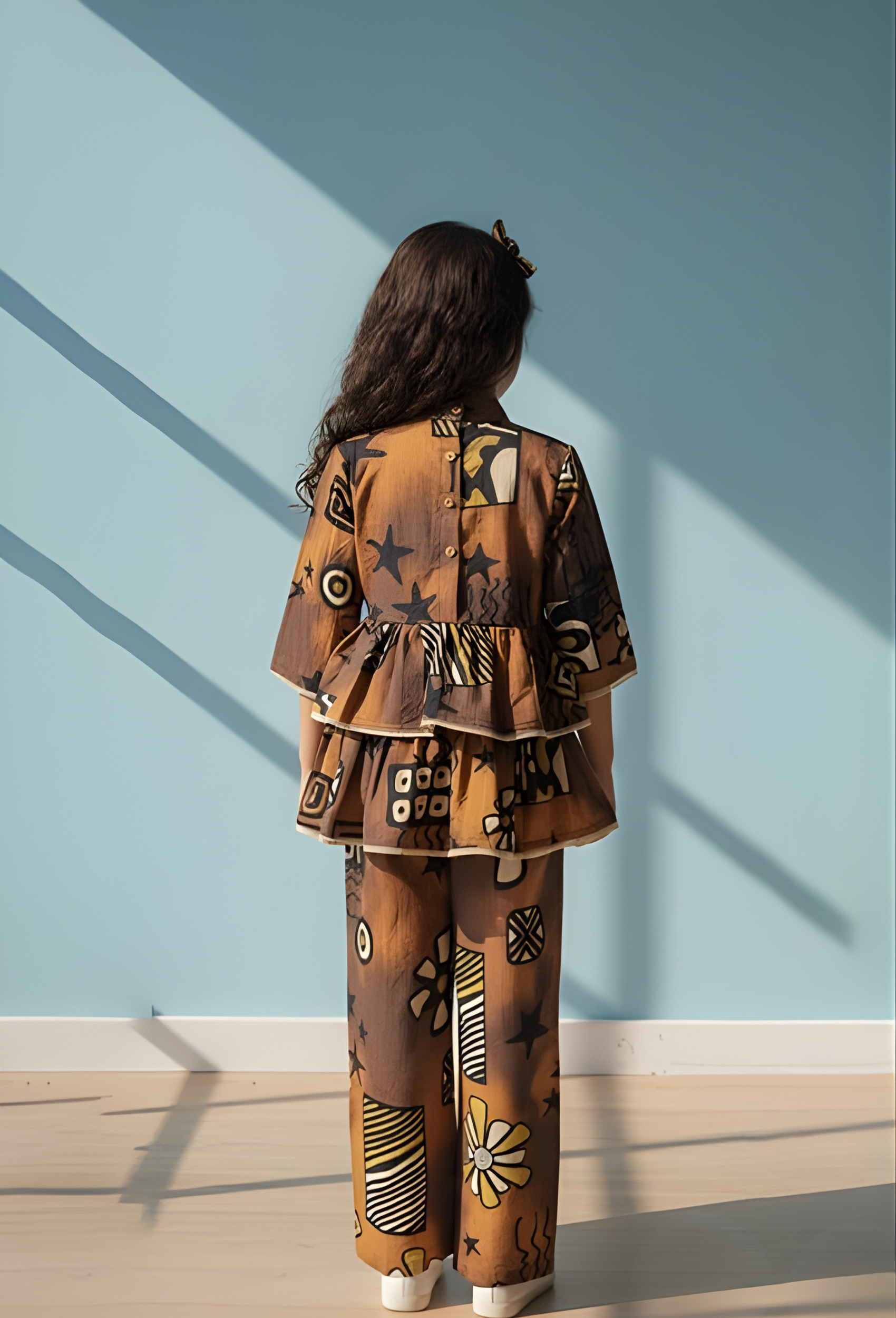 Brown Flared Co-ord Set for Girls at Cotton Cuddle Brown Flared Co-ord Set for Girls - Cotton Cuddle