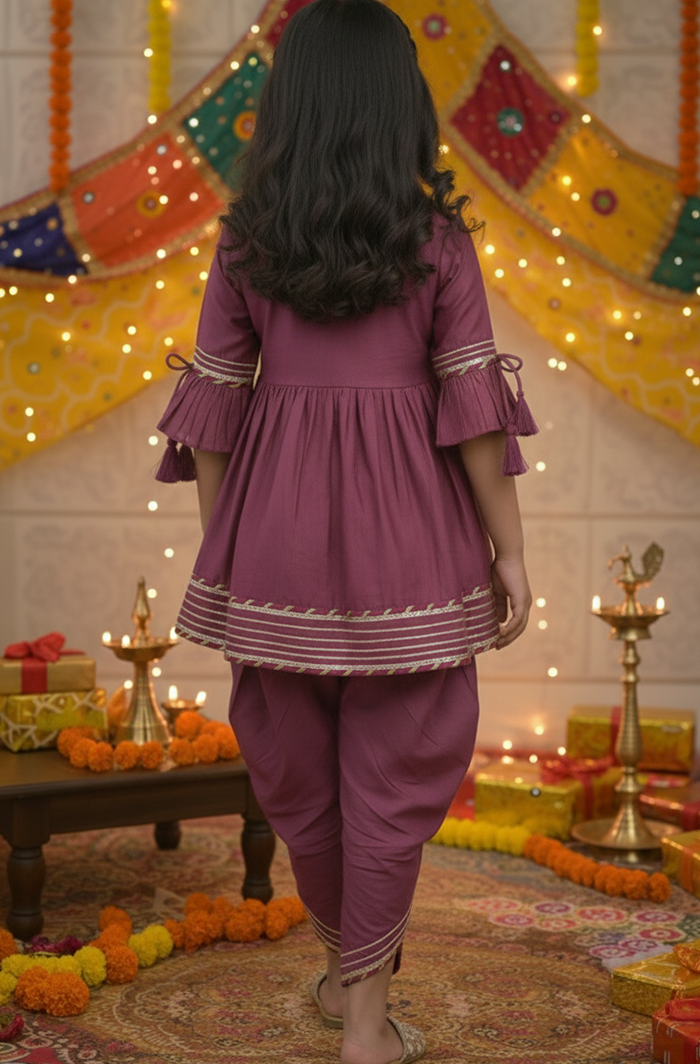 Add festive charm to your little girl’s wardrobe with this Girls Ethnic Kurti and Dhoti Pant Set, crafted in soft cotton fabric for all-day comfort. Featuring a beautifully printed kurti paired with a stylish dhoti pant, this outfit blends traditional elegance with easy wearability—perfect for celebrations and special occasions.