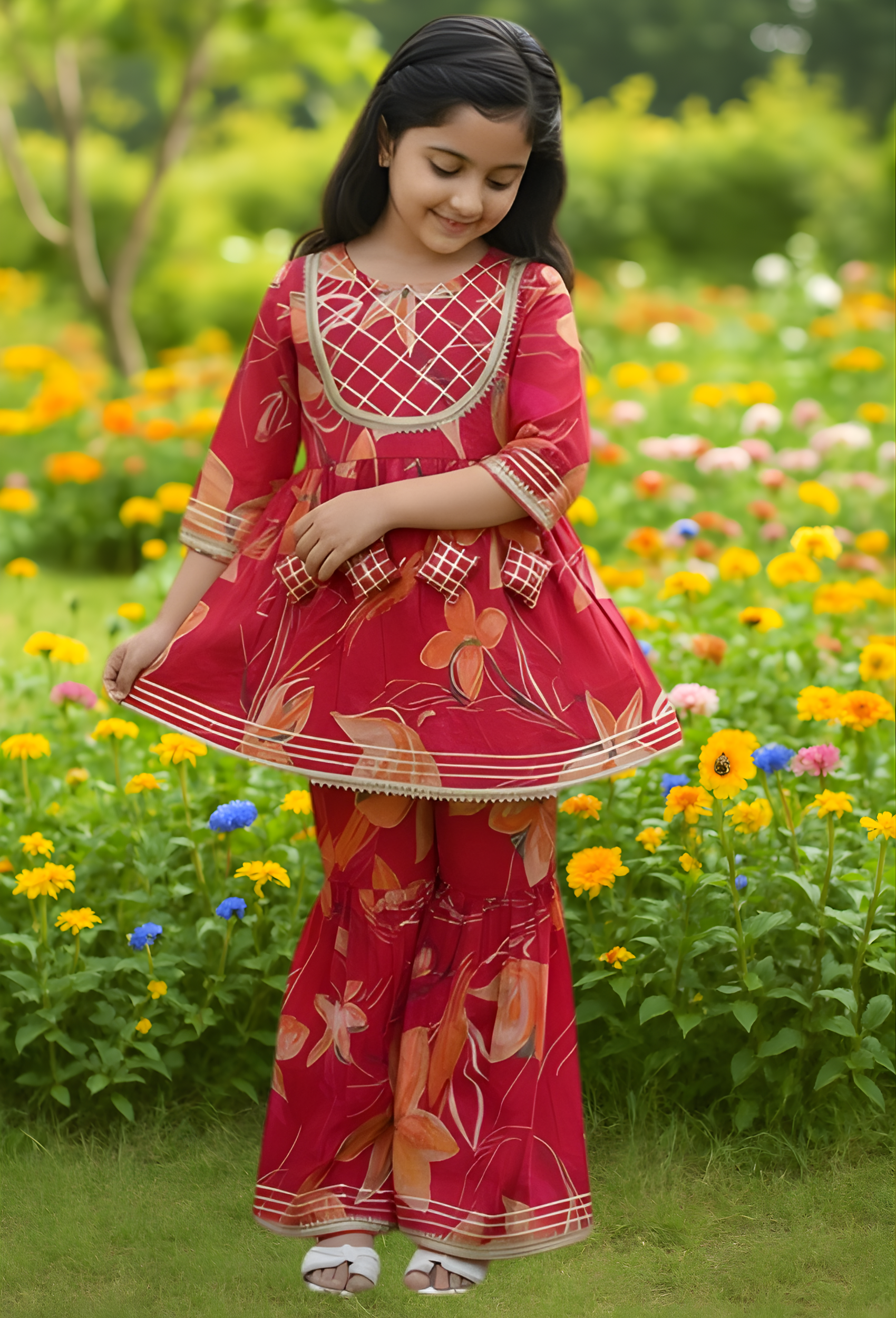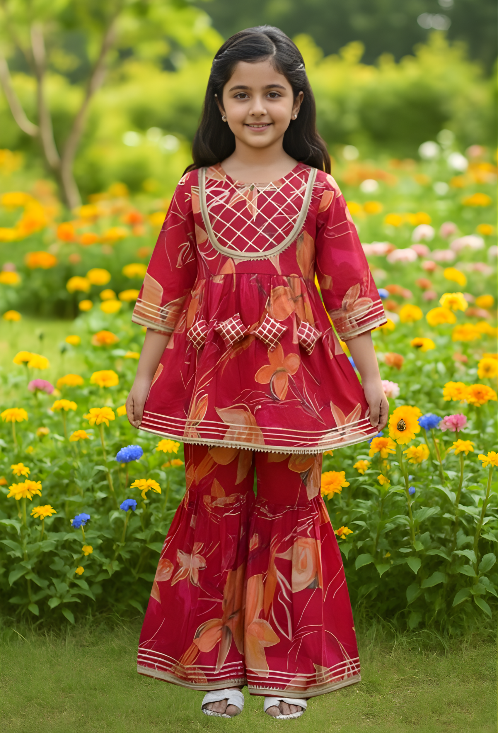 I have recently purchased this sharara set for my 6year old kid.. she just loved them and likes to wear them very often because of the soft and comfortable fabric and the traditional textured suit the attire a lot..