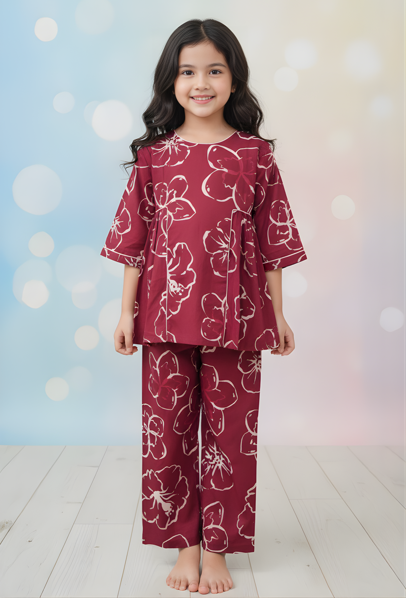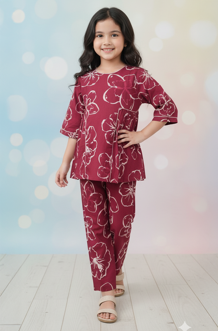Girls stay comfortable and stylish all day in the Maroon Gather Co-ord Set. It has a neatly gathered top paired with matching shorts for a relaxed, easy fit. Made from soft, breathable cotton, the lightweight set is perfect for casual outings, playtime, or a relaxed day at home.