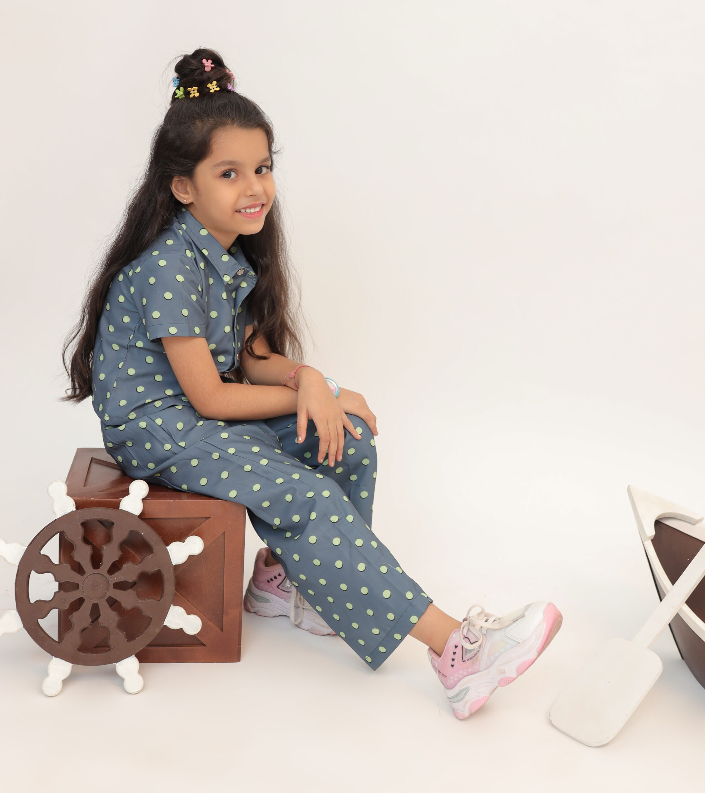 The Girls Cotton Printed Night Suit is a cute and comfortable outfit. The two-piece set includes a full-sleeve top and matching pajama bottoms with playful prints. Made from soft, breathable cotton fabric, it is easy to move in, making it perfect for cozy nights and everyday lounging.