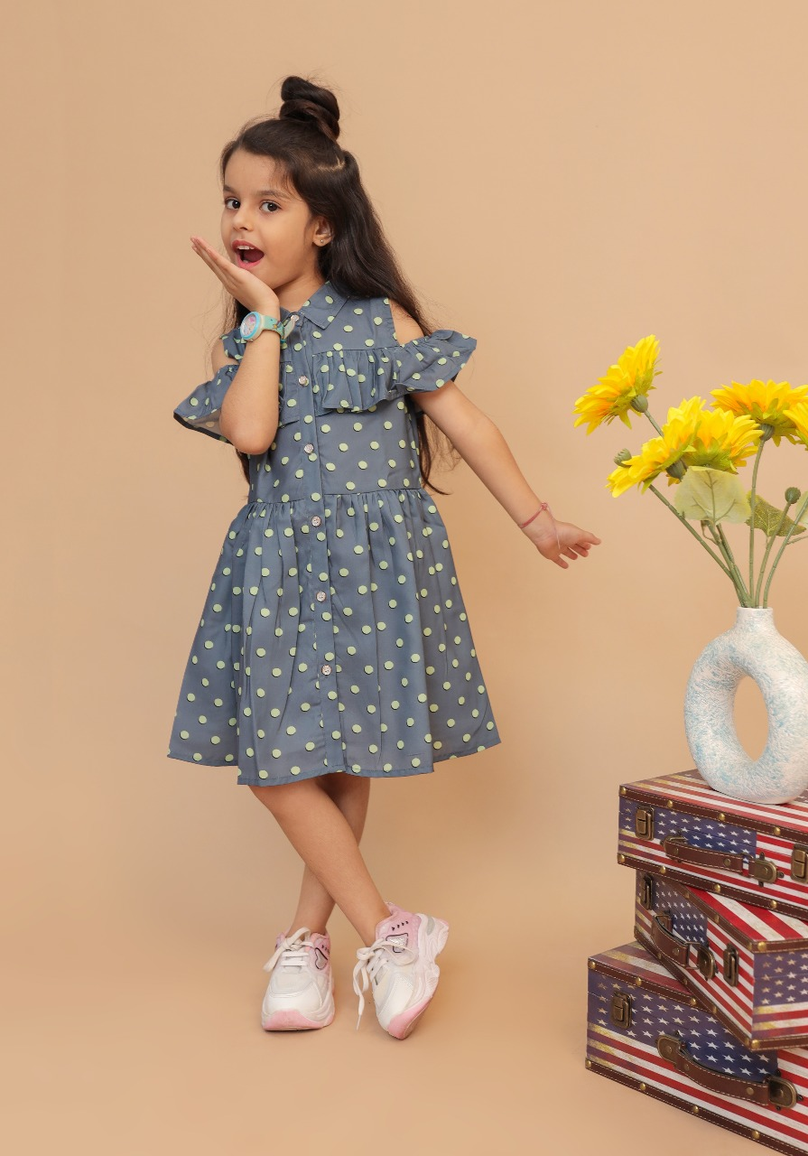 The Grey-Green Off-Shoulder Dress is a fashionable and trendy outfit. The frill dress is great for occasions as well as casual get-togethers due to its off-shoulder style and stunning green polka-dot print desgin, making it cute and stylish. The poly-georgette fabric makes it comfortable, lightweight, soft, and easy to move in.
