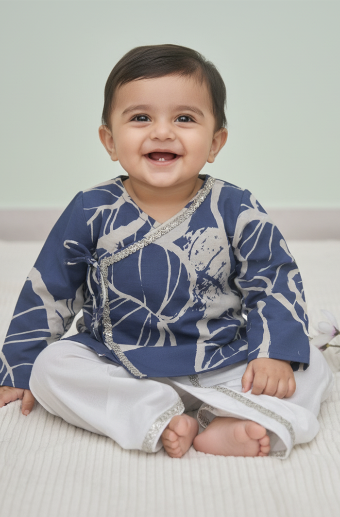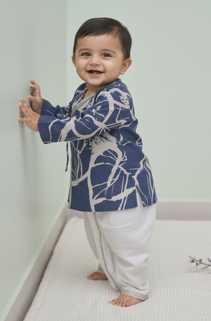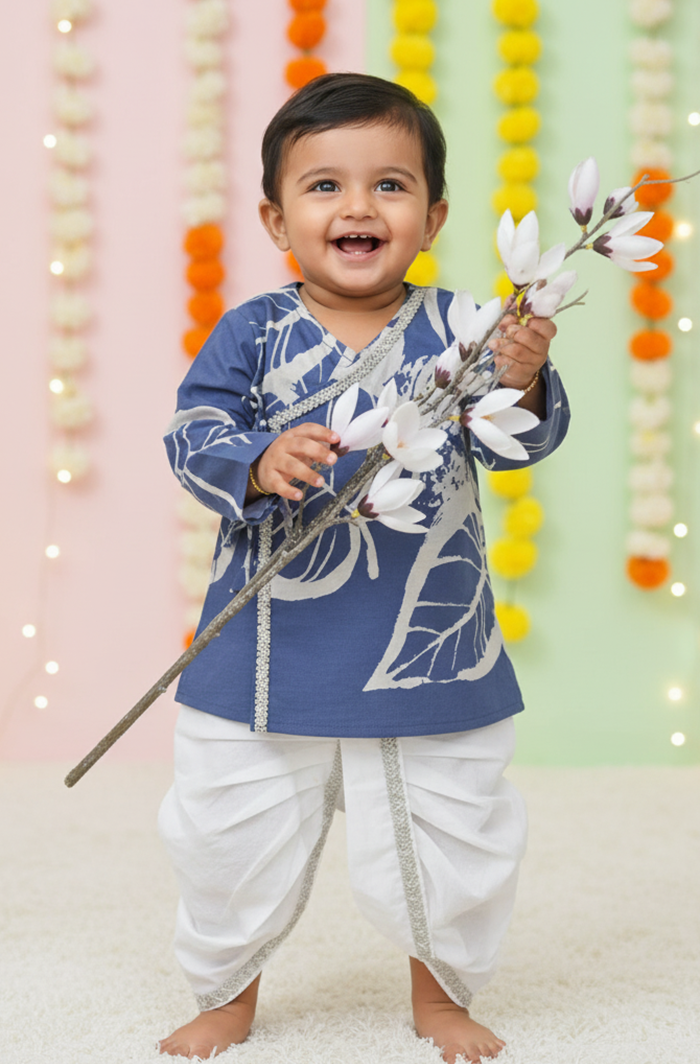 Indigo Botanical Infant Boy Angrakha & Dhoti Set at Cotton Cuddle Indigo Botanical Infant Boy Angrakha & Dhoti Set - Cotton Cuddle