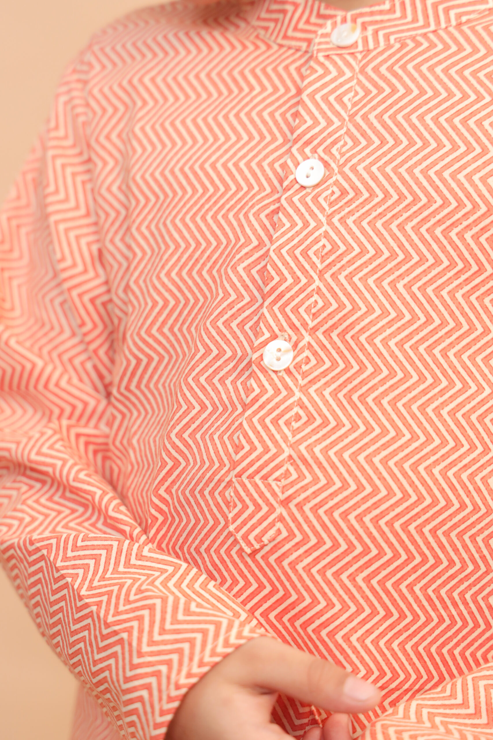 This stylish and comfortable Orange Peach Kurta Pajama Set is made from soft, breathable 60×60 cotton, keeping your child at ease while looking effortlessly fashionable. This kurta pajama set blends tradition with everyday wearability, making it perfect for festivals, family get-togethers, or cultural events.