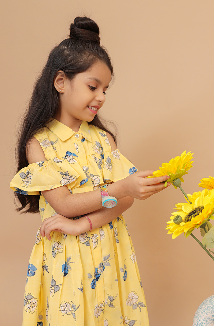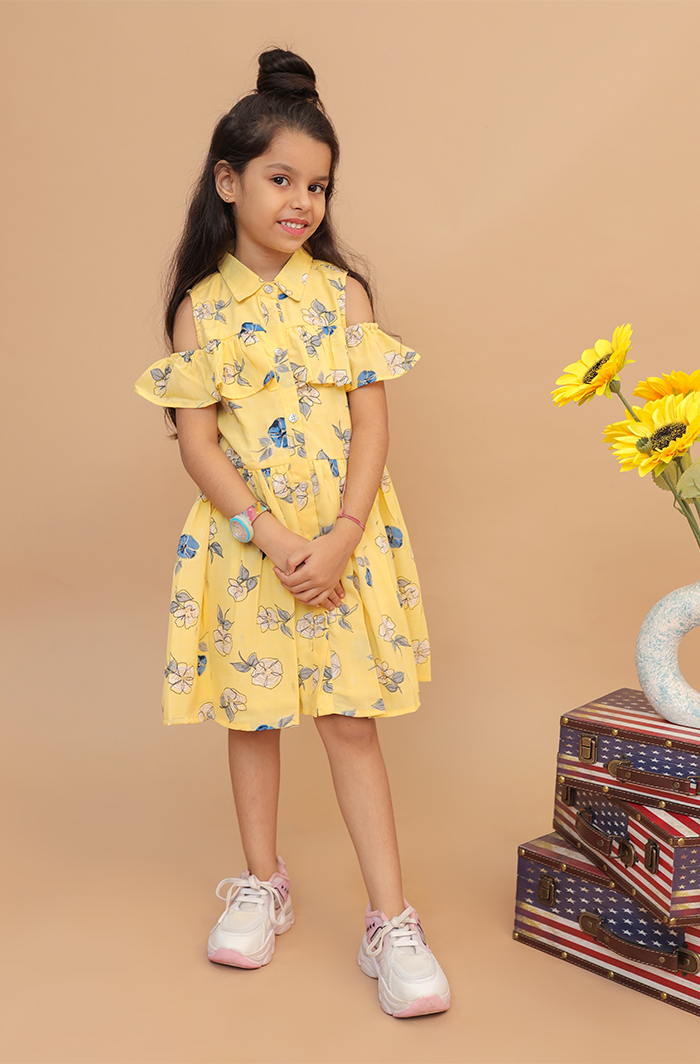The Yellow Off-Shoulder Dress is a fashionable and trendy outfit. The frill dress is perfect for occasions as well as casual get-togethers due to its off-shoulder style and stunning yellow floral print, making it cute and stylish. The poly-georgette fabric makes it comfortable, lightweight, soft, and easy to move in.